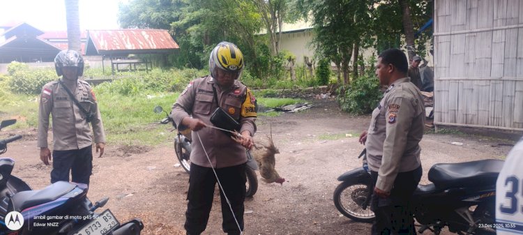 Tribratanewssikka.com - Maumere, 24 Desember 2025 – Aparat Kepolisian Sektor (Polsek) Alok bertindak cepat membubarkan aktivitas perjudian sabung ayam yang berlangsung di Kompleks Pasar Alok, Jalan Balitbang, Kelurahan Kota Uneng, Kecamatan Alok, Kabupaten Sikka, pada Selasa (23/12/2025) sekitar pukul 10.50 Wita.