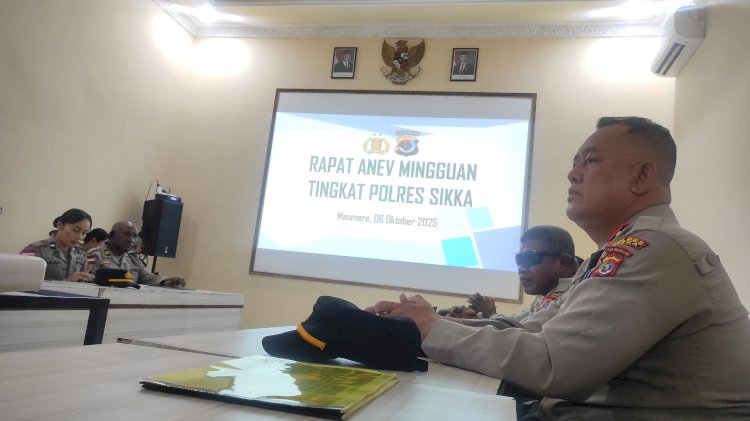 Melalui Anev mingguan yang digelar di Ruang PPKO Polres Sikka, Kapolres Sikka AKBP Bambang Supeno menegaskan pentingnya peningkatan patroli untuk mencegah tindak pencurian serta percepatan penyelesaian kasus di setiap fungsi. Kasat Polairud diminta memperkuat kegiatan lidik dan menyiapkan senjata laras panjang sebagai penunjang tugas, sementara latihan menembak diperbolehkan di luar jam dinas