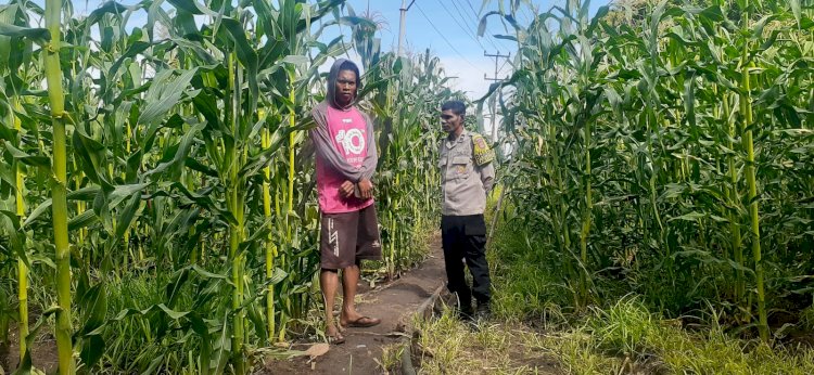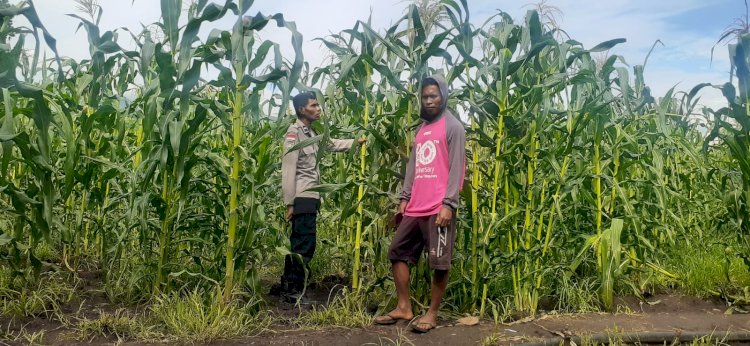 "Bhabinkamtibmas Polres Sikka Polda NTT Pastikan Jagung Tumbuh Optimal demi Ketahanan Pangan"
