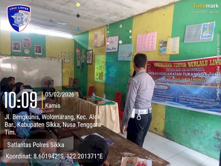 Tribratanewssikka.com - Maumere, 5 Februari 2026 – Dalam rangka mendukung suksesnya Operasi Keselamatan Turangga 2026, Satuan Lalu Lintas Polres Sikka terus menggencarkan kegiatan preemtif dan preventif melalui sosialisasi keselamatan berlalu lintas kepada masyarakat, khususnya generasi muda. Salah satu upaya nyata tersebut diwujudkan melalui kegiatan sosialisasi yang dilaksanakan di MTs Muhammadiyah Wuring, Kamis (5/2/2026) pagi.