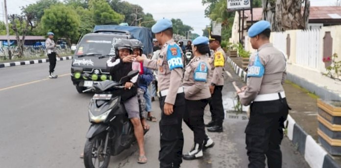 Tribratanewssikka.com - Maumere, 2 Maret 2026. Suasana senja di Kota Maumere, Minggu (1/3/2026), terasa berbeda. Di tengah arus kendaraan yang melintas di Jalan Jenderal A. Yani, tepat di depan Markas Komando Polres Sikka, tampak jajaran personel Sie Propam Polres Sikka berdiri dengan penuh semangat dan senyum humanis.