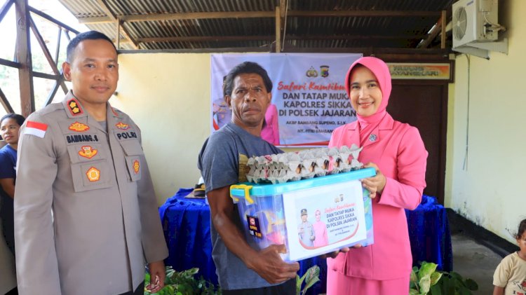Setelah melaksanakan rangkaian kegiatan di wilayah hukum Polres Sikka, Kapolres Sikka AKBP Bambang Supeno, S.I.K., bersama Ketua Bhayangkari Cabang Sikka Ny. Fitri Bambang, didampingi Wakapolres Sikka serta para Pejabat Utama Polres Sikka, menyerahkan bantuan sosial kepada masyarakat setempat.