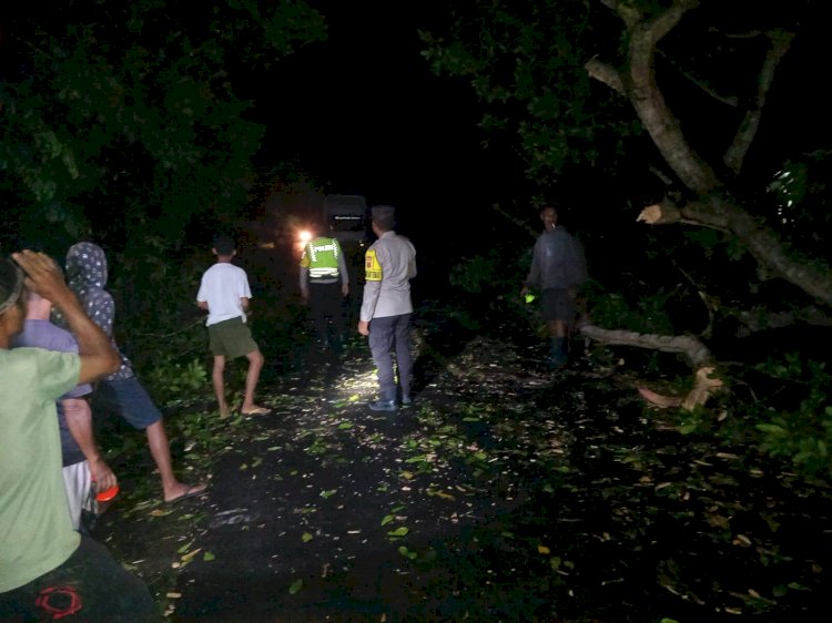 Hujan, Gelap, dan Pohon Tumbang: Aksi Cepat Polsek Waigete Polres Sikka Selamatkan Jalur Maumere–Larantuka