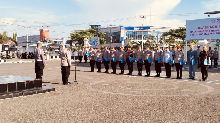 Apel pagi diikuti oleh Kapolres Sikka AKBP Bambang Supeno, S.I.K., Wakapolres Sikka Kompol Nofi Posu, S.H., S.I.K., M.H., para Kabag, Kasat, Kasi, perwira, bintara, serta ASN Polres Sikka.