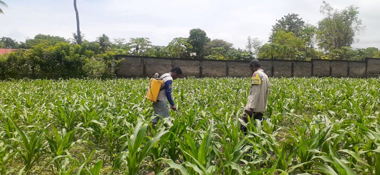 Tribratanewssikka.com - Maumere, 10 Februari 2026. Sebagai bentuk dukungan nyata Polri terhadap program ketahanan pangan nasional, Bhabinkamtibmas Kelurahan Wolomarang, Kecamatan Alok Barat, Kabupaten Sikka, AIPDA Hironimus Taji Werang, melaksanakan pemantauan lahan pertanian jagung milik Kelompok Tani Tati Nahing, Selasa (10/2/2026).