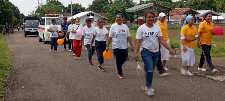 Jalan sehat resmi dibuka oleh Kepala SMK Sta. Elisabeth Lela bersama Direktur Rumah Sakit Sta. Elisabeth Lela di titik start yang berlokasi di halaman SMP Negeri 1 Lela.