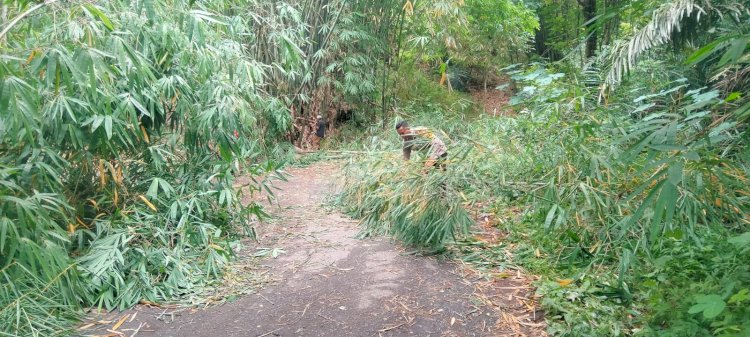 Tanpa menunggu lama, Aipda Istanto Luther tiba di Tempat Kejadian Perkara (TKP) dan langsung berkoordinasi dengan masyarakat setempat. Dengan semangat gotong royong, personel Polri bersama warga membersihkan batang-batang bambu yang melintang dan menghalangi ruas jalan, menggunakan peralatan seadanya namun penuh kesadaran akan pentingnya kelancaran akses publik.