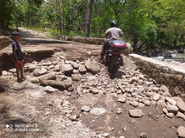 Patroli dan monitoring yang dilakukan Bhabinkamtibmas Desa Wolomapa, Kabupaten Sikka Bripka Husen Bethan, menunjukkan kepedulian Polri terhadap kondisi infrastruktur dan keselamatan warga pascahujan deras di Kecamatan Hewokloang.