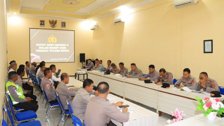 Rapat Analisa dan Evaluasi (Anev) minggu kedua bulan Maret 2026 yang dipimpin oleh Bambang Supeno selaku Kapolres Sikka menjadi momentum penting bagi jajaran Polres Sikka untuk melakukan evaluasi kinerja, memetakan situasi kamtibmas, serta memperkuat koordinasi antar fungsi dan Polsek jajaran. Melalui rapat ini diharapkan seluruh personel semakin meningkatkan profesionalitas, disiplin, dan kesiapsiagaan dalam menjaga keamanan serta memberikan pelayanan terbaik kepada masyarakat di wilayah hukum Polda Nusa Tenggara Timur.