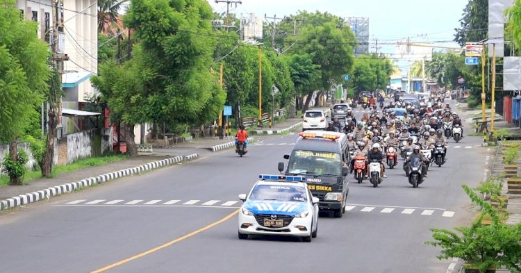 Di sisi kiri dan kanan, barisan anggota Polres Sikka berdiri tegak dalam formasi jajar kehormatan—sebuah penghargaan terakhir bagi rekan sejawat yang telah mengakhiri tugasnya di dunia.