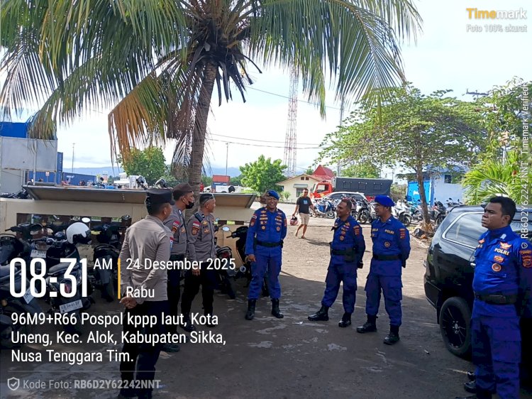 Tribratanewssikka.com - Maumere, 24 Desember 2025 – Dalam rangka menjamin keamanan dan kelancaran arus penumpang menjelang perayaan Hari Raya Natal 2025 dan Tahun Baru 2026, Polres Sikka melalui Operasi Lilin Turangga 2025 terus meningkatkan pengamanan di sejumlah titik strategis, salah satunya di Pos Terpadu Pelabuhan Laurens Say (L. Say) Maumere.