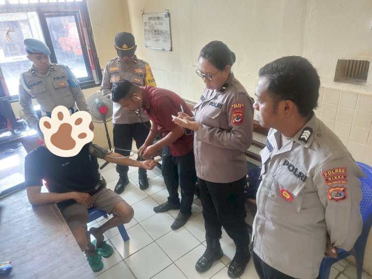 Pemeriksaan kesehatan dilakukan oleh Petugas Klinik Polres Sikka yang dipimpin langsung oleh AIPDA Ketrin, bersama staf medis, dengan pengawasan personel Sat Tahti dan piket jaga tahanan.
