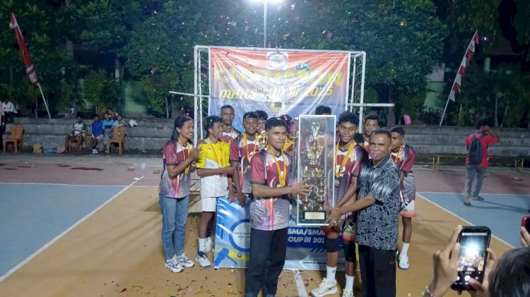 Turnamen Voli Putra/Putri Antar SMA se-Kabupaten Sikka memperebutkan Piala MKKS III Tahun 2025 resmi berakhir di Lapangan SMAN 1 Maumere dengan keluarnya SMAK Sint Gabriel dan SMAN 1 Maumere sebagai juara, seluruh rangkaian laga final berjalan lancar dan kondusif berkat pengamanan humanis dan persuasif personel Polsek Alok Polres Sikka Polda NTT hingga pukul 21.00 Wita.