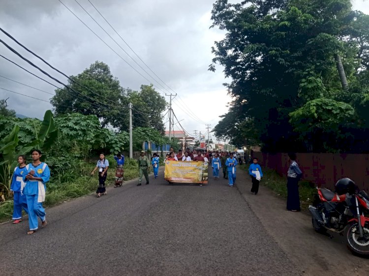 Ratusan peserta berjalan kaki menyusuri rute yang telah ditentukan, melewati jalan raya belakang Pasar Alok, menuju pertigaan Jembatan Waidoko, lalu berbelok ke arah Gapura Penerimaan Salib Suci NYD di Jalan Trans Maumere–Magepanda, wilayah Koliaduk, Kelurahan Kota Uneng.