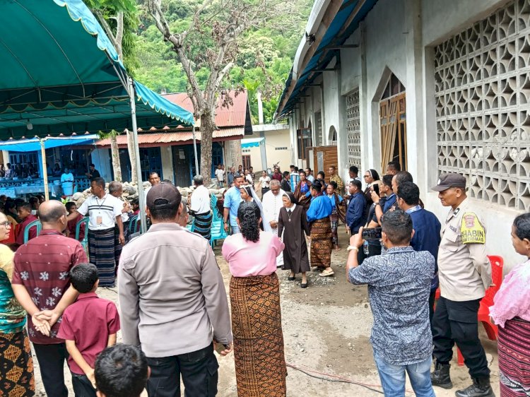 Tribratanewssikka.com - Maumere.,8 Desember 2025 – Jajaran Polsubsektor Mego Polsek Paga Polres Sikka Polda NTT melaksanakan pengamanan pada Misa Penerimaan Kaul Kekal Suster Putri-Putri Nyala Kasih Ilahi (FDZ) atas nama Sr. Maria Delfina Koli, FDZ, yang berlangsung khidmat pada Minggu, 7 Desember 2025, bertempat di Paroki St. Vinsentius Apaulo Feondari, Desa Wolodesa, Kecamatan Mego, Kabupaten Sikka.