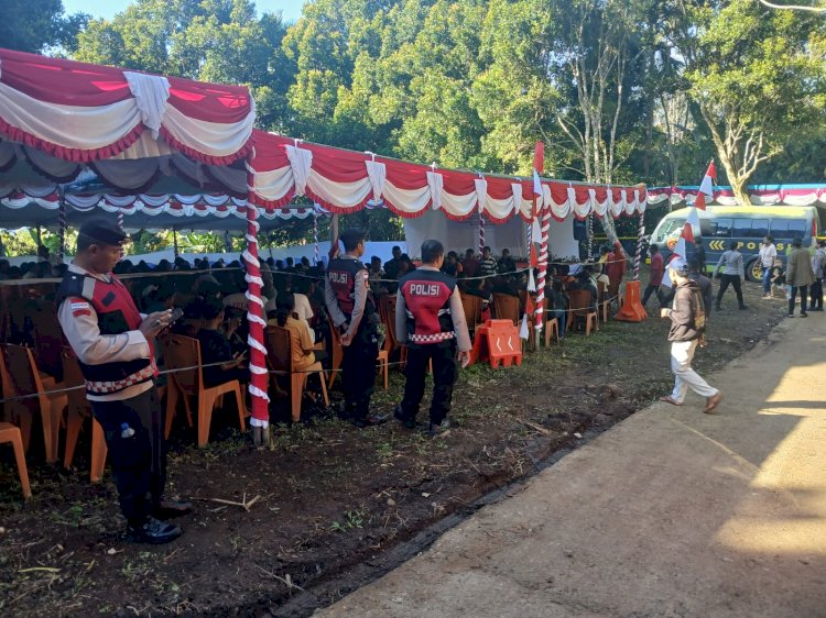 Kegiatan penyaluran Bantuan Sosial dari Ketua Umum Bhayangkari Polri di Desa Kloangpopot berjalan sukses berkat kehadiran dan keterlibatan aktif Satuan Samapta Polres Sikka. Tak hanya menjaga keamanan, personel juga membantu teknis pelaksanaan mulai dari pengaturan tempat hingga distribusi paket bantuan, sehingga acara berlangsung tertib, lancar, dan penuh kepedulian sosial.