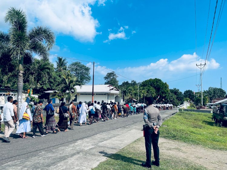 Pengamanan ziarah tahunan Keuskupan Maumere di Sanctuarium Wisung Fatima Lela berjalan aman, tertib, dan lancar berkat kesiapan Satlantas Polres Sikka dalam mengatur arus lalu lintas, mengamankan jalur, serta memberikan pelayanan terbaik bagi umat.