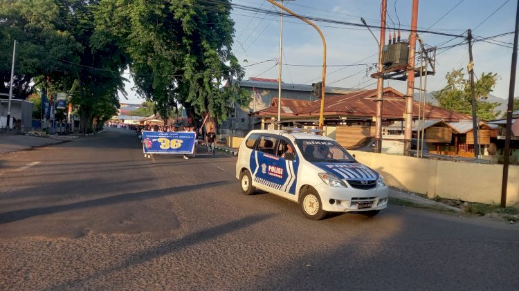 Pengawalan jalan santai HUT ke-36 SMAS Jhon Paul II oleh Satlantas Polres Sikka Polda NTT berjalan aman dan lancar.