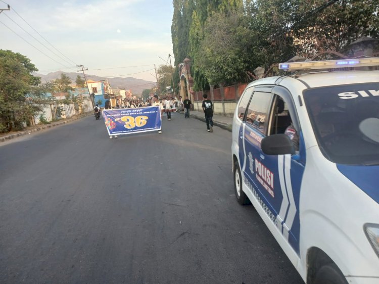 "Satlantas Polres Sikka Polda NTT Kawal Jalan Santai HUT ke-36 SMAS Jhon Paul II"