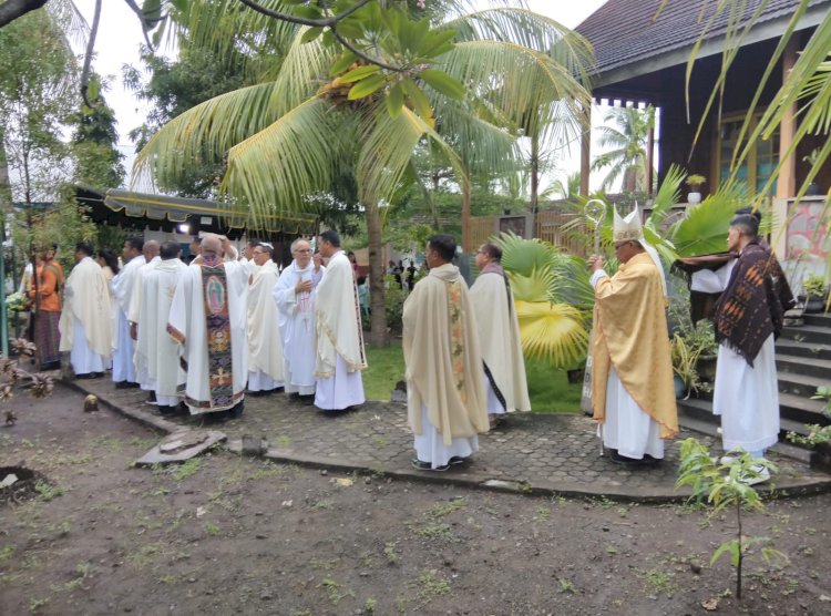 Ibadah misa yang dimulai sekitar pukul 16.00 WITA tersebut dipimpin langsung oleh Yang Mulia Uskup Maumere, Mgr. Edwaldus Martinus Sedu, didampingi para imam konselebran.