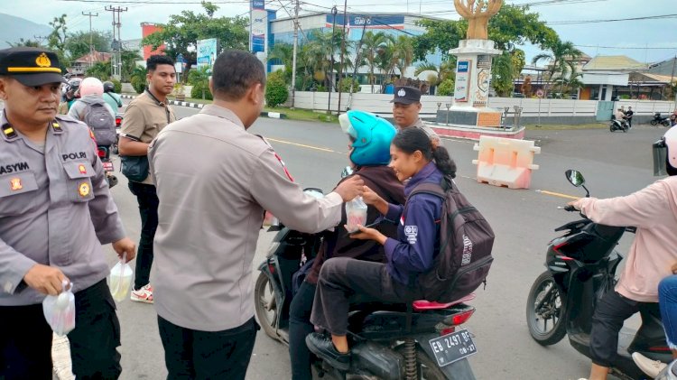 Sentuhan Humanis Polres Sikka Polda NTT di Bulan Ramadan, Unit Siwas Berbagi Tak’jil untuk Masyarakat