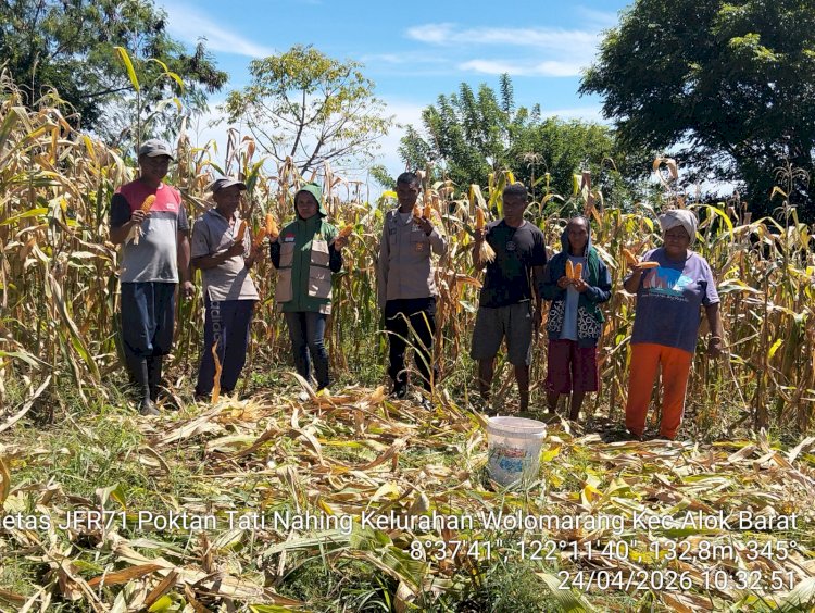 Tak berhenti pada panen, Polres Sikka juga aktif melakukan peninjauan lokasi sebagai bagian dari persiapan Panen Raya Jagung Kuartal II Tahun 2026. Di Kelurahan Wolomarang dan Desa Waihawa, aparat bersama penyuluh pertanian memastikan kesiapan tanaman yang diproyeksikan menghasilkan antara 2 hingga 5 ton.