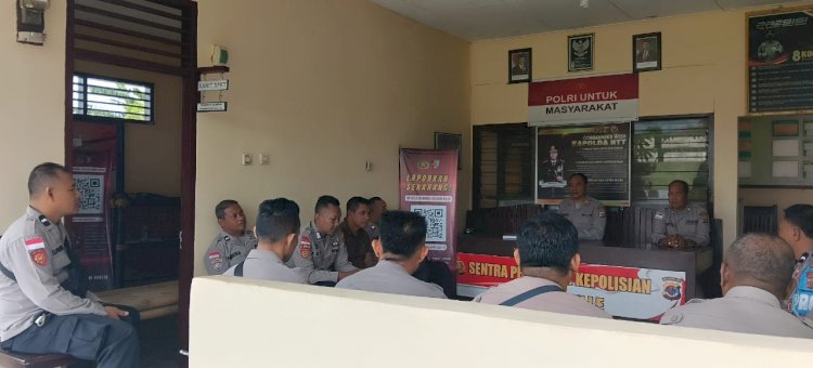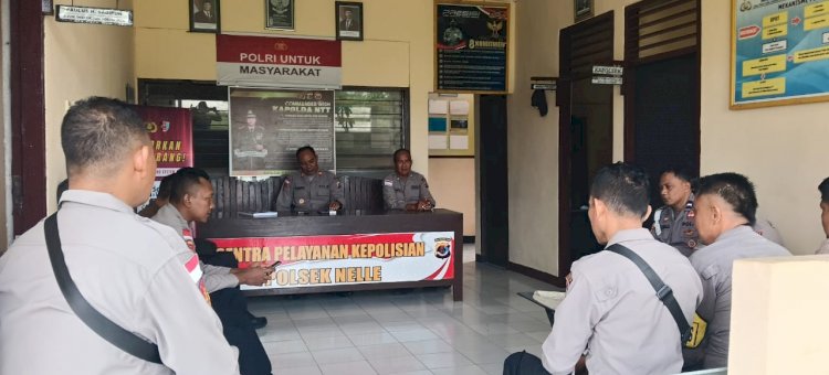 Polsek Nelle Polres Sikka Polda NTT menggelar Anev mingguan yang dipimpin Kapolsek IPTU Sang Nyoman Parwata dengan penekanan pada disiplin, pelaksanaan tugas sesuai tupoksi.