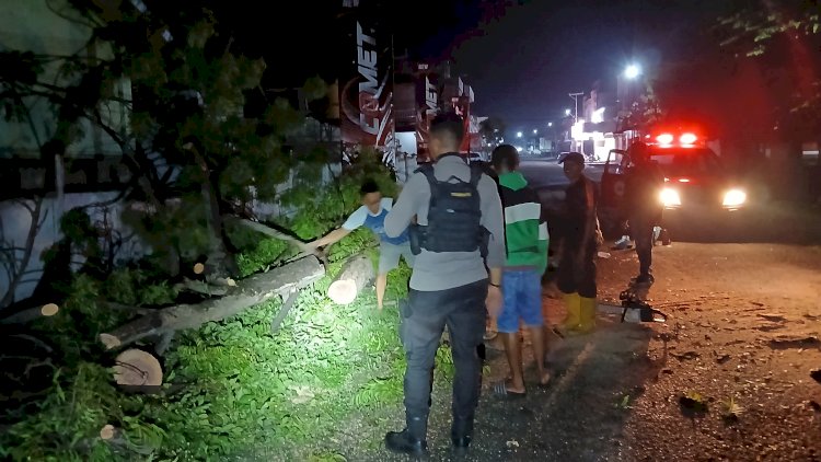 Kegiatan tersebut berlangsung sejak pukul 17.45 WITA hingga 19.30 WITA, sebagai respons cepat atas laporan adanya pohon tumbang yang melintang di badan jalan dan berpotensi membahayakan pengguna jalan serta mengganggu kelancaran arus lalu lintas.