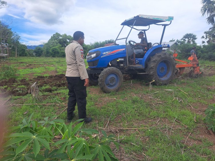 Bhabinkamtibmas Desa Tanaduen Polres Sikka Polda NTT tidak hanya menjaga kamtibmas, tetapi juga ikut memegang cangkul, membajak ribuan meter lahan petani Nuba Puan untuk memastikan jagung tumbuh subur demi ketahanan pangan Kabupaten Sikka dan Indonesia.