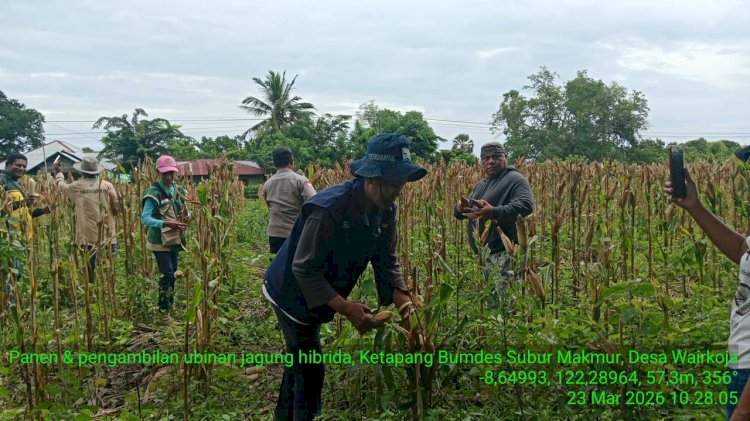 Kegiatan panen yang dimulai sekitar pukul 09.00 WITA tersebut merupakan bagian dari Program Ketahanan Pangan Tahun Anggaran 2025 yang dikelola oleh BUMDes Subur Makmur Desa Wairkoja. Panen ini turut didampingi oleh Bhabinkamtibmas Desa Wairkoja AIPDA Dami Daty bersama Kanit Binmas Polsek Kewapante AIPDA Yosep P. Koles, S.H., sebagai bentuk dukungan Polri terhadap sektor pertanian masyarakat.