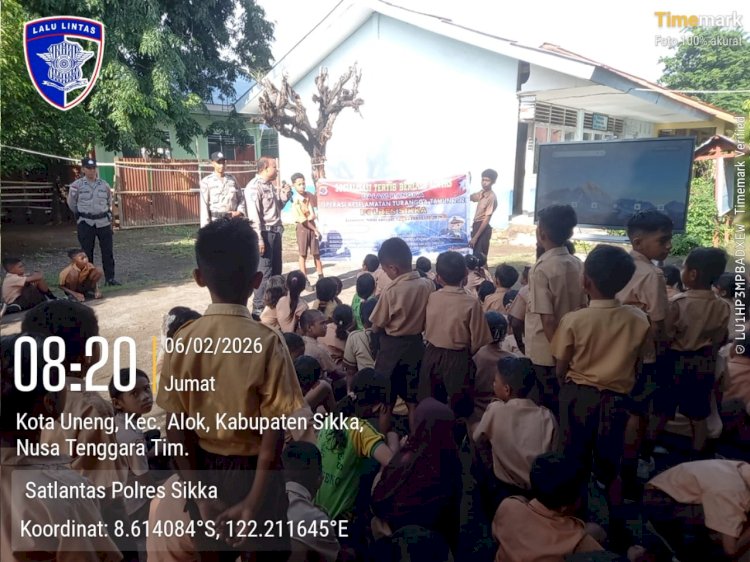 Tribratanewssikka.com - Maumere, 6 Februari 2026 – Dalam upaya menciptakan keselamatan berlalu lintas sejak usia dini, Satuan Lalu Lintas Polres Sikka bersama Satuan Binmas melaksanakan kegiatan sosialisasi Operasi Keselamatan Turangga 2026 di SDI Kota Uneng, Jumat pagi.