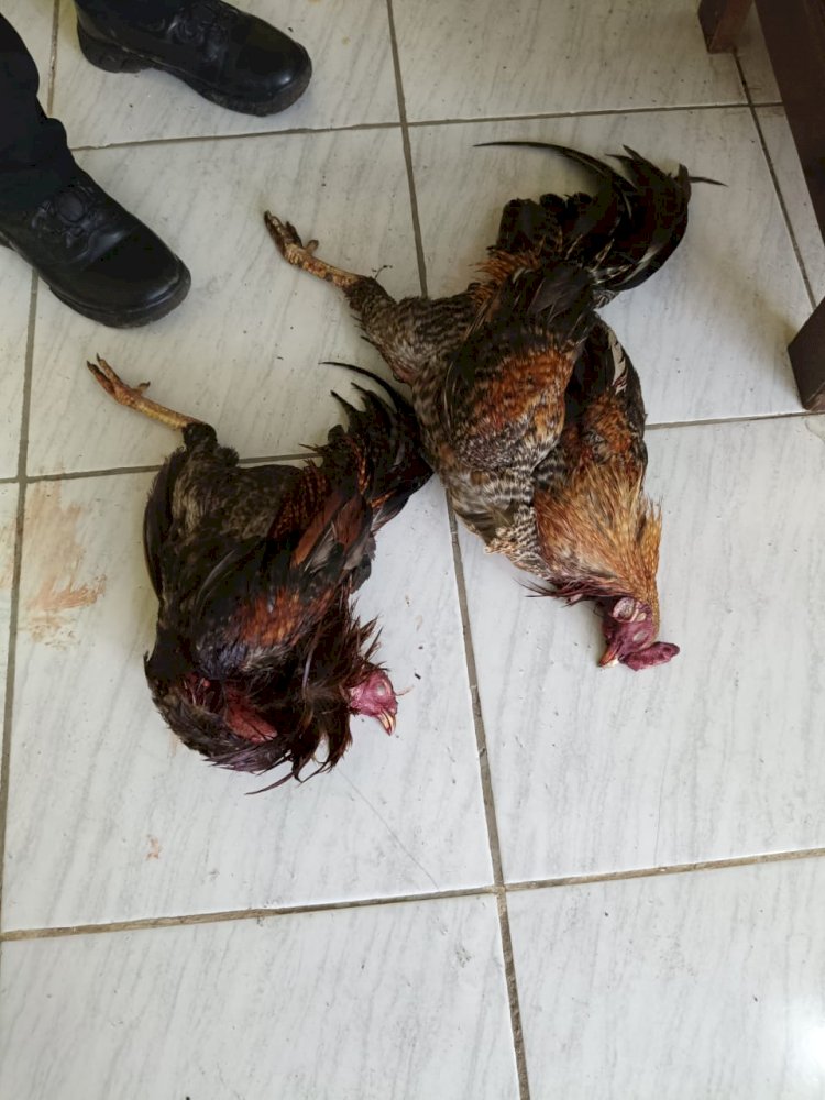 Petugas kemudian melakukan penyisiran menyeluruh di sekitar lokasi kejadian. Dari hasil pengecekan lapangan, aparat menemukan dua ekor ayam jantan dalam kondisi sudah mati, yang kuat dugaan merupakan sarana utama dalam praktik judi sabung ayam.