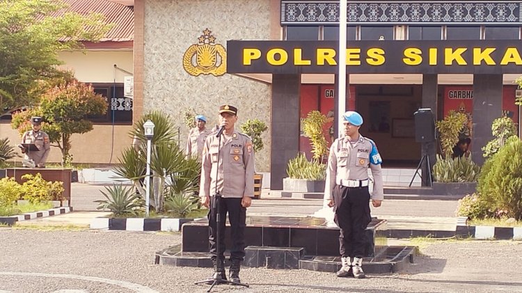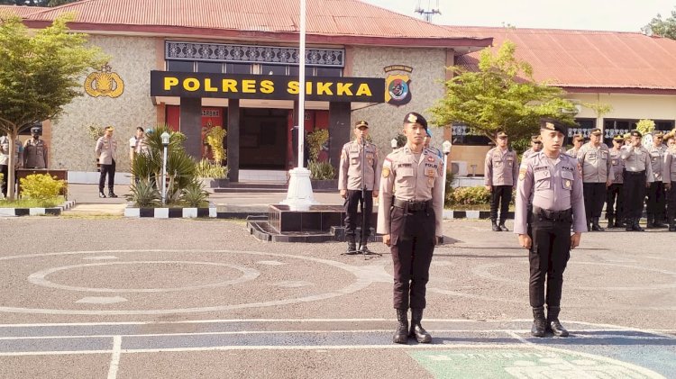 Apel turut dihadiri oleh Wakapolres Sikka Kompol Nofi Posu, S.H., S.I.K., M.H., para Kabag, Kasat, Kasi, Kapolsek jajaran, ASN, serta seluruh personel Polres dan Polsek se-jajaran.