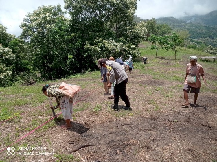 Di Kecamatan Mego, tepatnya di Dusun Welakena, Desa Kowi, Bhabinkamtibmas Desa Kowi Aiptu Dewa Gd Swijana bersama PPL Yoseph Vincensius Kostan mendampingi Kelompok Tani Ate Mete A melakukan penanaman jagung tahap III di lahan seluas 4 hektare.