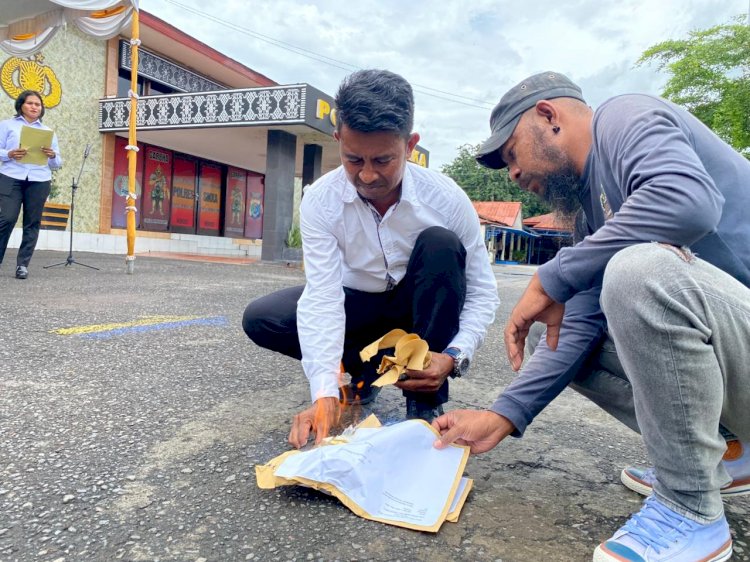 Polres Sikka Polda NTT melaksanakan pemusnahan barang bukti narkotika dari dua perkara yang telah berkekuatan hukum tetap di Lapangan Hitam Mapolres Sikka. Kegiatan yang dipimpin Wakapolres Sikka tersebut merupakan bentuk transparansi penegakan hukum serta komitmen kepolisian dalam memberantas penyalahgunaan dan peredaran narkotika di wilayah Kabupaten Sikka. Situasi selama kegiatan berlangsung aman, tertib, dan kondusif.