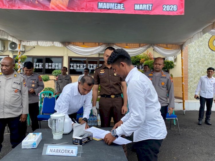 Tribratanewssikka.com - Maumere, 9 Maret 2026. Polres Sikka kembali menunjukkan komitmennya dalam memberantas peredaran gelap narkotika dengan melaksanakan kegiatan pemusnahan barang bukti tindak pidana narkotika yang telah berkekuatan hukum tetap (inkracht).