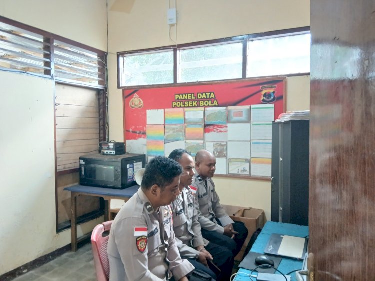 "Personel Polsek Bola Polres Sikka Polda NTT Laksanakan Pembinaan Rohani Rutin Melalui Zoom Meeting"
