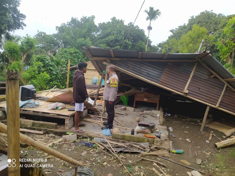 Menindaklanjuti kejadian tersebut, pada Selasa pagi (10/3/2026) sekitar pukul 08.30 WITA, Bhabinkamtibmas Desa Iantena langsung turun ke lokasi kejadian di RT 002/RW 001 Dusun Dobo untuk melakukan peninjauan serta pendataan terhadap rumah-rumah warga yang terdampak bencana.