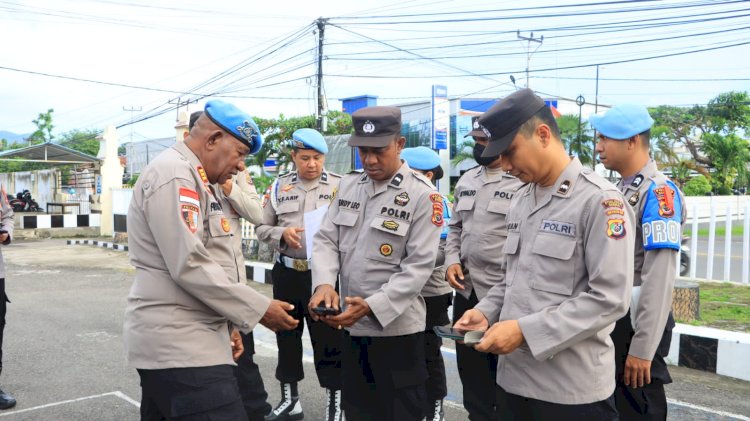 Setelah arahan disampaikan, kegiatan berlanjut pada inti pelaksanaan. Satu per satu personel menjalani pemeriksaan secara menyeluruh tanpa pengecualian. Tidak ada yang luput dari perhatian. Setiap detail diperiksa dengan ketelitian tinggi—mulai dari sikap tampang, kerapian dan kesesuaian penggunaan seragam dinas, kelengkapan identitas diri, hingga administrasi pribadi.
