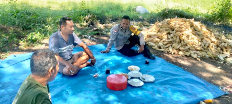 Kehadiran Bhabinkamtibmas Desa Manubura, AIPDA Istanto Luther, di tengah kegiatan panen menjadi bukti nyata dukungan aparat kepolisian terhadap program ketahanan pangan masyarakat.